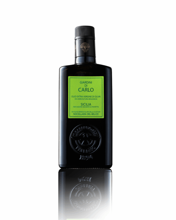 GIARDINI DI CARLO – 500 ML Olio Extra Vergine di oliva Biologico Monocultivar Nocellara del Belice I.G.P Sicilia – da olive denocciolate